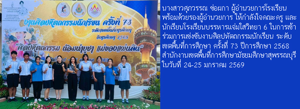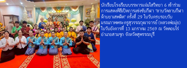 โรงเรียนบรรหารแจ่มใสวิทยา 6 เลขที่ 104 หมู่ 1 ตำบลหนองสะเดา อำเภอสามชุก จังหวัดสุพรรณบุรี 72130 โทร. 035-571-017 Facebook : โรงเรียนบรรหารแจ่มใสวิทยา 6 E-mail : Bj6school@gmail.com และ banharnjamsai6@gmail.com