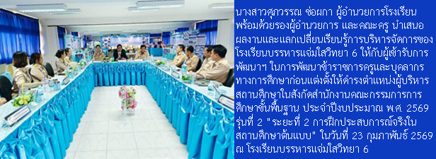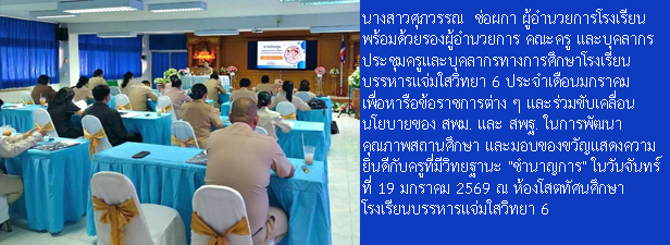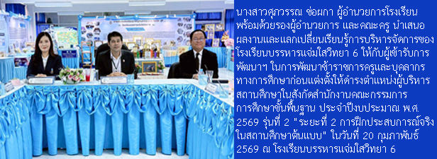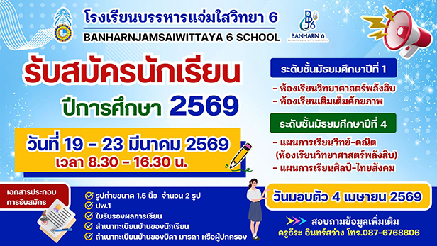โรงเรียนบรรหารแจ่มใสวิทยา 6 เลขที่ 104 หมู่ 1 ตำบลหนองสะเดา อำเภอสามชุก จังหวัดสุพรรณบุรี 72130 โทร. 035-571-017 Facebook : โรงเรียนบรรหารแจ่มใสวิทยา 6 E-mail : Bj6school@gmail.com และ banharnjamsai6@gmail.com
