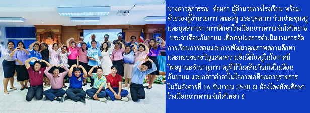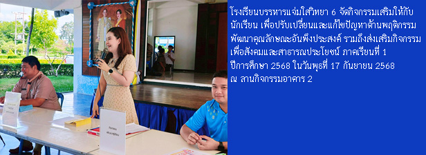 โรงเรียนบรรหารแจ่มใสวิทยา 6 เลขที่ 104 หมู่ 1 ตำบลหนองสะเดา อำเภอสามชุก จังหวัดสุพรรณบุรี 72130 โทร. 035-571-017 Facebook : โรงเรียนบรรหารแจ่มใสวิทยา 6 E-mail : Bj6school@gmail.com และ banharnjamsai6@gmail.com